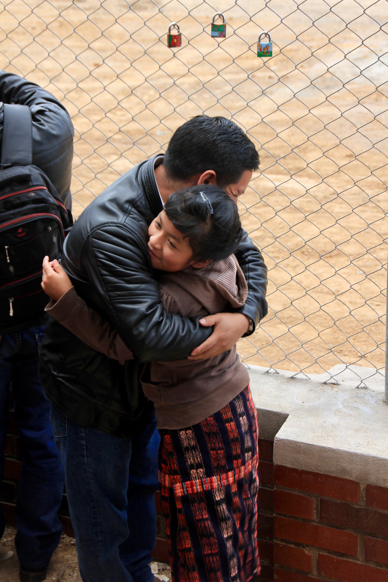 Dad hugging girl